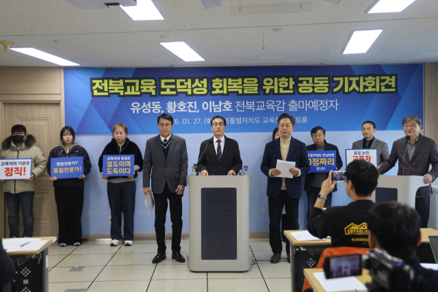 이들은 "전북의 19만 여명에 이르는 학생과 청소년의 표상이 돼야 할 교육감은 '도덕성'이 기본적 자격이자 전제가 돼야 한다"면서 "그러한 자격과 인격을 갖추지 못한 후보와 계속 경쟁을 펼쳐야 하는가 하는 깊은 고민과 의구심 속에 공동기자회견을 갖게 됐다"고 말 문을 열었다.