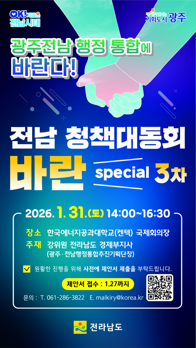 오는 6월을 목표로 한 '광주전남 행정통합' 드라이브에 공무원들의 업무 강도가 연일 가중되고 있는 가운데, 강위원 전남도 경제부지사가 주말 강행하기로 한 '경제 타운홀미팅'이 도마에 올랐다.