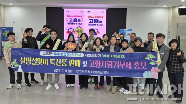 전남 고흥군(군수 공영민)은 9일 우주항공청 대회의실(경남 사천시)에서 고흥군·우주항공청·사천시가 함께하는 설 명절맞이 특산품 판매 및 고향사랑기부제 홍보 행사를 개최했다고 밝혔다.