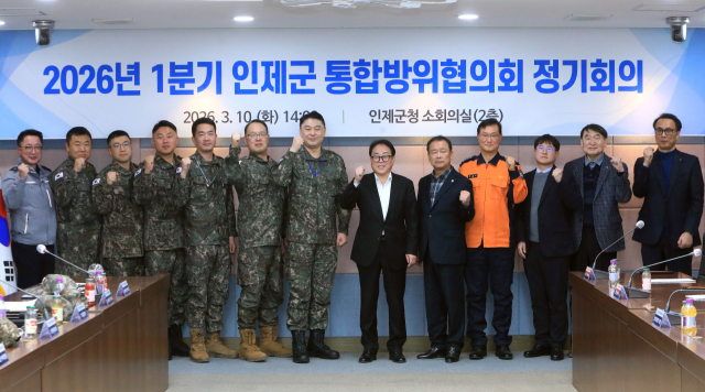 인제군은 10일 인제군청 소회의실에서 ‘2026년 1분기 인제군 통합방위협의회 정기회의’를 개최하고 지역 안보 현안을 점검하며 통합방위 대응 체계 강화 방안을 논의했다.