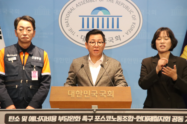 이 의원은 19일 국회 정론관에서 포스코·현대제철 노동조합과 함께 ‘대한민국 철강산업 위기 극복을 위한 공동 기자회견’을 열고 “철강산업은 단순한 경기 침체를 넘어 제조업 기반을 위협하는 국가산업안보 위기에 직면해 있다”고 밝혔다.
