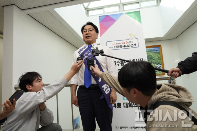강 시장은 이날 오후 4시 공식 일정을 모두 마친 뒤 광주시선거관리위원회를 찾아 예비후보 등록 절차를 완료하고 더불어민주당 전남광주통합특별시장 후보 경선에 본격 나섰다.