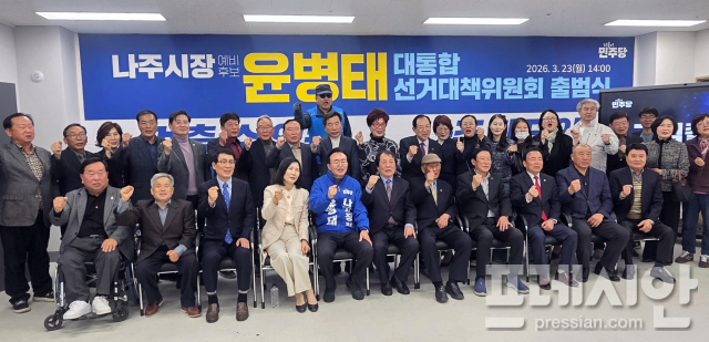 6·3 지방선거에서 재선 도전에 나선 윤병태 나주시장 예비후보가 23일 '대통합 선거대책위원회'를 출범시키며 본격 선거 행보에 속도를 냈다.