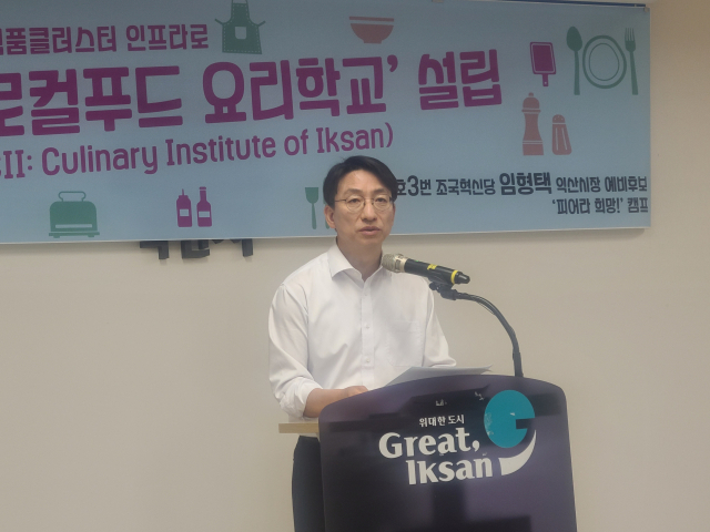 임형택 조국혁신당 익산시장 예비후보는 24일 익산시청 브리핑룸에서 공약 관련 기자회견을 하고 "지역의 풍부한 로컬푸드 자원과 국가식품클러스터를 연결하는 전문 요리교육기관인 '익산로컬푸드 요리학교'를 설립하겠다"고 발표했다.