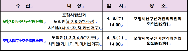 경북 포항시 남·북구선거관리위원회가 오는 6월 3일 실시되는 제9회 전국동시지방선거를 앞두고 후보자 대상 입후보설명회를 개최한다.
