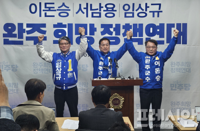 더불어민주당 완주군수 경선에 나선 이돈승·서남용·임상규 예비후보가 6일 완주군청과 전북도의회에서 잇따라 기자회견을 열고 ‘완주 희망 정책연대’를 선언했다.
