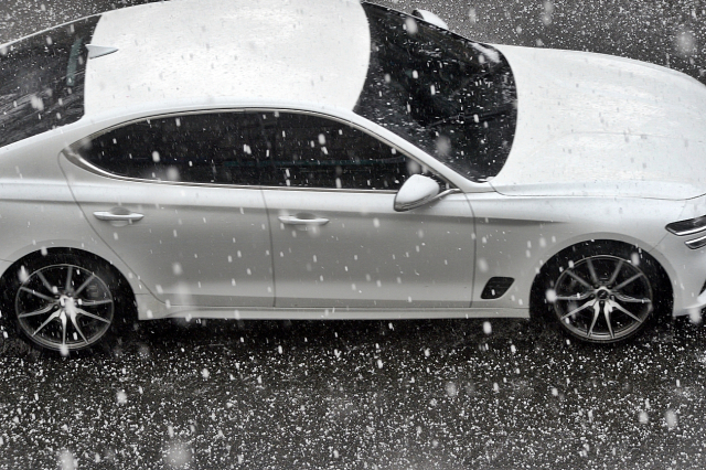 6일 오후 2시 대구 수성구에서 우박이 내리고 있는 가운데 승용차들이 운행을 하고 있다.
