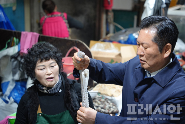 이후 정 대표는 여수 서시장을 찾아 상인들과 대화하며 민심을 청취했다.