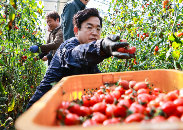 허 후보는 25일 대전시 유성구 송정동에 위치한 3000평 규모의 토마토 농장을 찾아 줄기를 정리하고 열매를 수확하며 농민들과 머리를 맞댔다.
