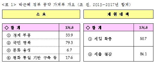| ▲ 출처: 기획재정부, "박근혜 정부 국정 과제 이행을 위한 재정 지원 실천 계획 '공약 가계부' 발표" (2013. 5. 31) |