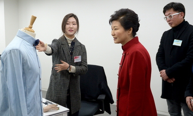 ▲박근혜 대통령이 지난 2015년 12월 29일 오전 서울 관광공사에서 열린 문화창조벤처단지 개소식을 마치고 나서 사일런트 포레스트 기업을 방문, 설명을 듣고 있다. 2015.12.29 ⓒ연합뉴스