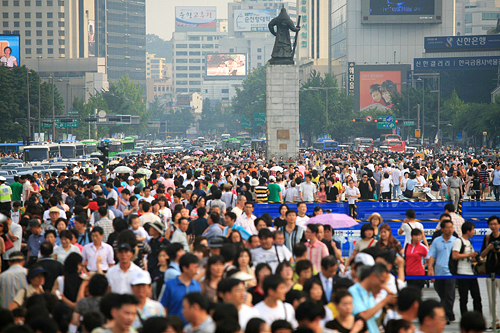 2004년 2월, 서울시장으로 재임 중이던 이명박 대통령이 <세계일보>와의 인터뷰에서 했던 말이다. 그러나 '민주주의 발전'을 위해 조성된 시청 앞 서울광장은 지난해 '촛불 정국'에 이어 올해 '노무현 전 대통령 서거 정국'에 이르기까지, 시종일관 높은 차벽으로 둘러싸였다.
