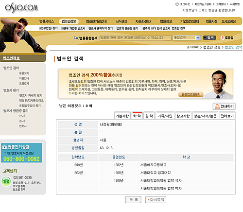 나경원 후보가 3500주를 보유하고 있는 오세오닷컴이라는 회사에 나 후보의 경력이 허위로 기재돼 있다는 것. 오세오닷컴(www.oseo.com)에서 제공하는 '법조인 정보'에 나 후보의 학력은 서울대학교 법학 석사, 박사로 기재돼 있다.