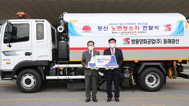 동해시(시장 심규언)가 지하자원개발로 인한 광산 및 주변지역 환경오염 방지를 위해 쌍용양회공업(주) 동해공장에 노면청소차량을 전달했다.