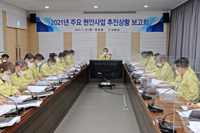 고흥군(군수 송귀근)은 지난 25일 고흥군청 흥양홀에서 ‘민선 7기’ 주요 현안사업 추진상황 보고회를 개최했다고 밝혔다.