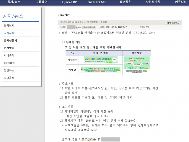 한전KDN(사장 박성철)이 사내포털과 이메일시스템을 통해 전체 직원이 참여하는 탄소저감 캠페인을 시행하고 있다고 밝혔다.