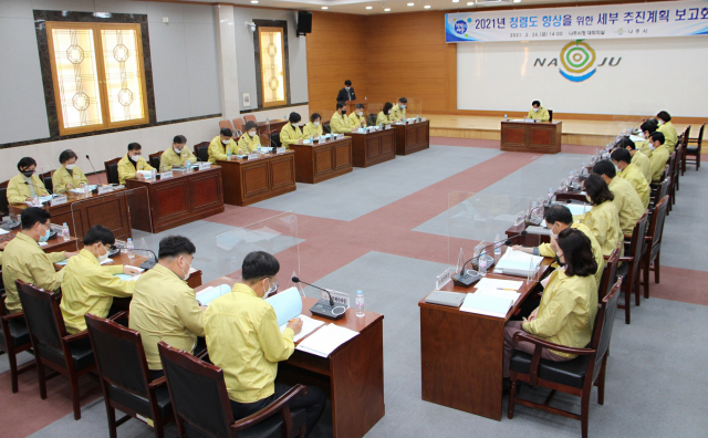 전라남도 나주시(시장 강인규)는 지난 26일 청사 대회의실에서 ‘2021년 청렴도 향상을 위한 부서별 세부 추진계획 보고회’를 개최했다고 밝혔다.