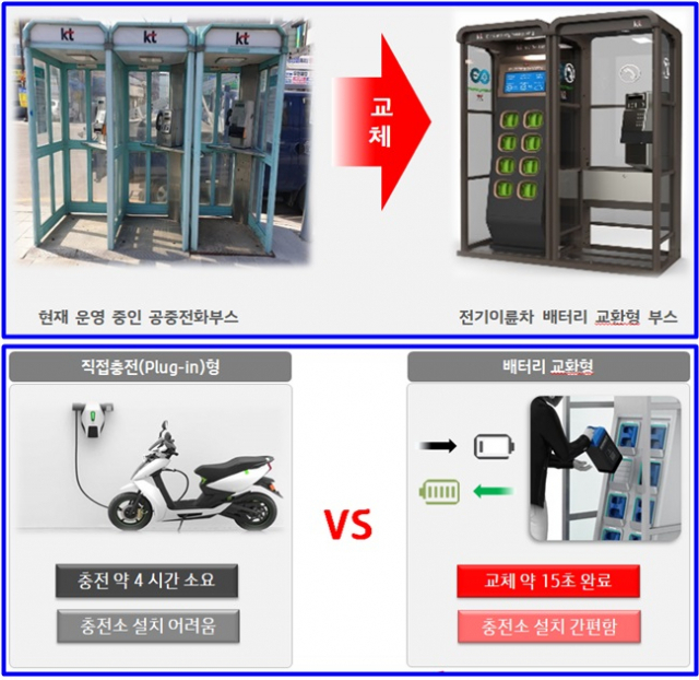 이에 비해 배터리 교환형인 공유 배터리 스테이션의 경우 배터리 교체에 소요되는 시간이 약 30초에 불과하고 공중전화 부스를 활용하기 때문에 충전소 설치도 간편하다는 장점이 있다.