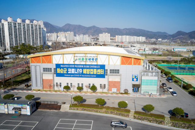 화순군은 이용대체육관에 예방접종센터를 설치하고 안정적이고 신속한 접종 시행에 행정력을 집중하고 있다.