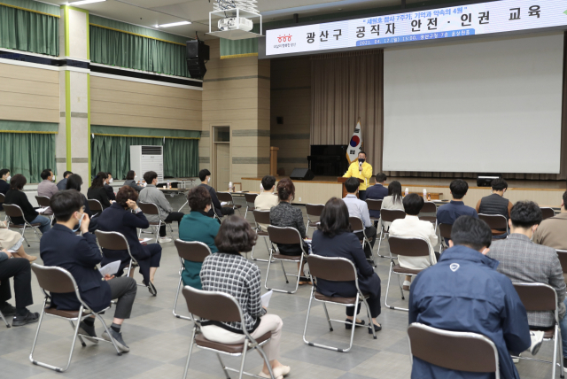 광주 광산구(구청장 김삼호)는 12일 구청 윤상원 홀에서 공직자 대상 안전·인권 교육을 실시했다.