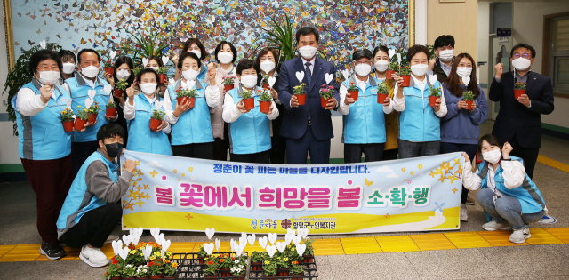 이날 ‘청춘불패 봉사단’ 어르신들이 직접 준비한 백일홍 화분과 ‘희망의 봄을 함께 기다려요!’라는 응원 메시지를 건네받은 공직자들은 지친 일상에 큰 위로를 얻는다고 전했다.