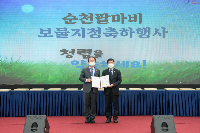 순천시(시장 허석)는 순천 팔마비의 보물(제2122호) 승격을 기념하기 위한 축하 행사를 13일 순천부읍성 남문터 광장에서 개최했다.