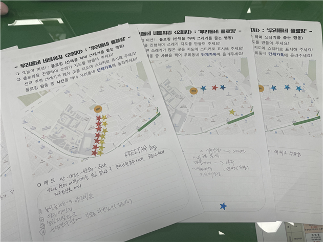 참가자들은 농성동 일대에서 정화활동에 참여하여 동네 쓰레기 지도를 제작하면서 주로 전봇대 주변에 담배꽁초와 마스크 등의 쓰레기가 많이 배출됨을 알 수 있었으며 이에 대응코자 SNS를 이용하여 마스크 제대로 버리기 홍보활동을 계획하고 또한 수거한 쓰레기의 올바른 분리배출 방법을 배우는 시간을 가졌다.
