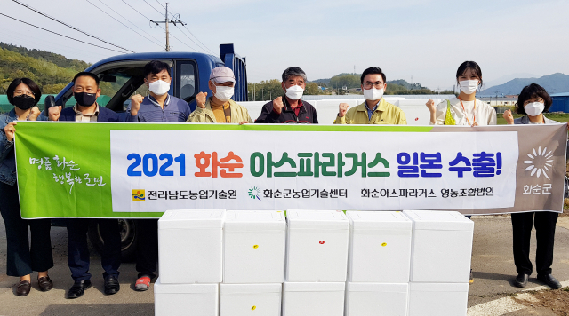 화순군에 따르면 5월까지 화순 아스파라거스 약 1.8t이 5차례에 걸쳐 일본에 수출된다. 수출량은 지난해보다 17%가량 증가한 규모로 화순 아스파라거스의 우수성이 국내뿐 아니라 해외에서도 인정받고 있다.