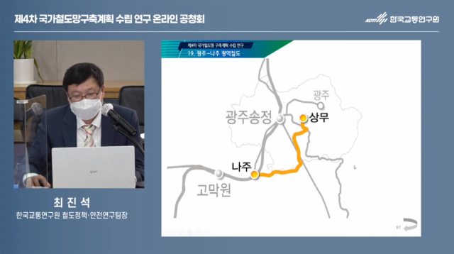 22일 나주시(시장 강인규)에 따르면 국토교통부는 이날 한국교통연구원 주최로 연구원 대회의실에서 ‘제4차 국가철도망 구축계획(2021~2030년) 수립연구’ 온라인 비대면 공청회를 열어 계획안 초안을 발표했다.