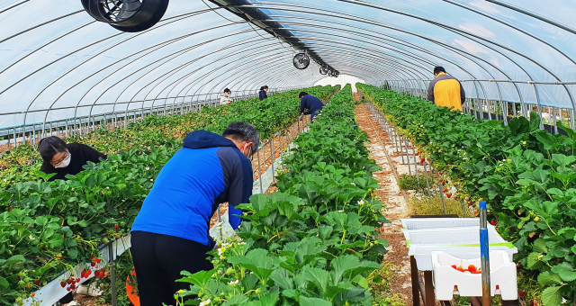 이날 사업은 궁산4리 심일남 이장이 과일을 자주 먹지 못하는 저소득층을 위해 하루 동안 개방한 딸기 하우스에서 손불면 직원들이 직접 수확‧전달하는 방식으로 진행됐다.