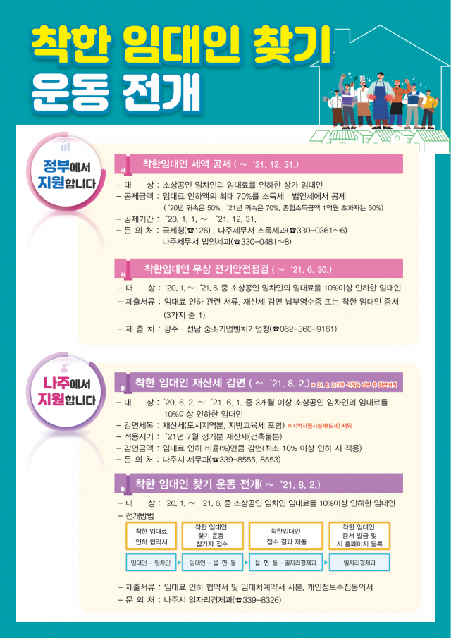 전라남도 나주시가 코로나19 장기화로 어려움을 겪는 소상공인 임차인을 위해 남몰래 선행을 펼쳐온 ‘착한 임대인’을 찾는다.