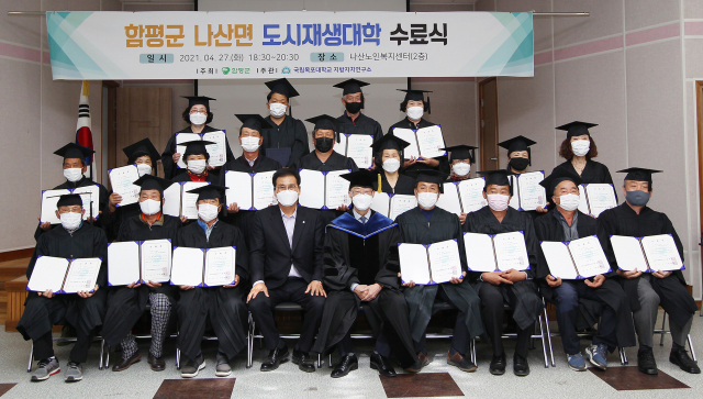 함평군은 지난 27일 나산면 노인복지센터 대강당에서 제1기 나산면 도시재생대학 수료식을 개최했다고 29일 밝혔다.