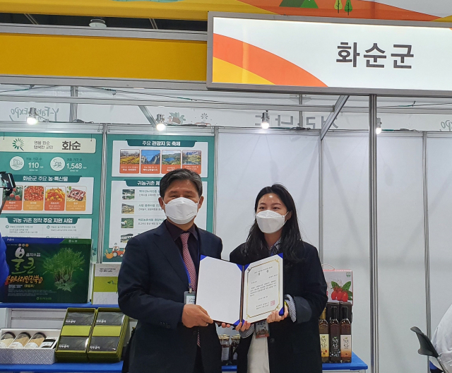 ▲화순군은 ‘2021 귀농·귀촌 청년창업 박람회’에 참가해 귀농·귀촌을 희망하는 도시민과 청년에게 다양한 귀농‧귀촌 정보를 제공하고 우수홍보관 상을 받았다.ⓒ화순군