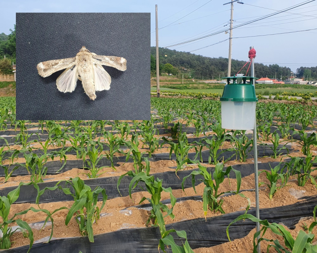 보성군은 지난 11일 득량면 비봉리 옥수수 재배포장에서 열대거세미나방 성충이 발견되어 피해 최소화를 위해 해충 예찰・방제 지도에 나섰다.