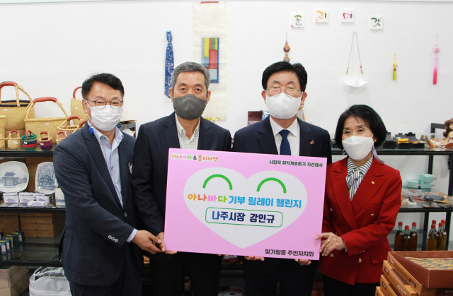 강 시장은 지난 20일 아나바다 장터를 방문해 기부 챌린지에 참여한 뒤 다음 동참자로 김영길 나주교육지원청장을 지목했다.