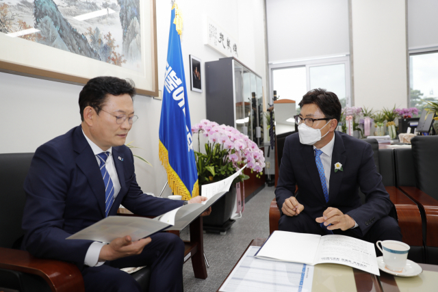 김철우 보성군수는 28일 더불어민주당 송영길 대표와 지역구의원인 김승남 국회의원 등 관련사업 상임위 위원을 만나 지역 핵심 현안사업에 대한 당 차원의 적극적인 협조와 지원을 요청했다.
