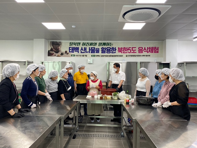 민주평화통일자문회의 태백시협의회(회장 김정식)는 지난 9일 태백시 주민공동작업장 행복나눔터에서 태백산나물을 이용한 북한5도 음식체험 행사를 가졌다.