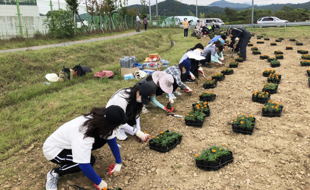 꽃 식재 이후에도 부지 일대 쓰레기, 폐기물 수거 등 환경정화 활동에 구슬땀을 흘렸다.