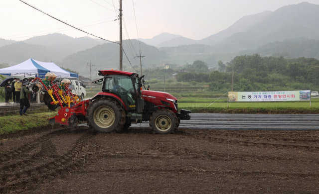 이번 연시회에서는 기계 수확이 용이한 선풍콩·아람콩 종자 파종과 친환경 생분해성 필름 비닐피복 작업을 동시에 시연했다.