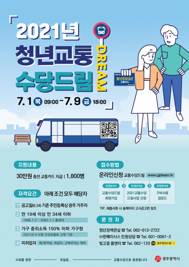 광주광역시가 청년들의 적극적인 구직활동을 지원하기 위해 ‘청년 교통수당 드림’ 사업 참여자 1,800명을 모집한다.