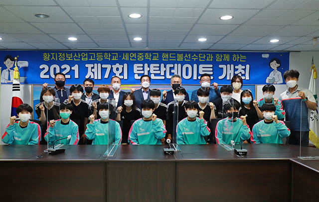 시는 ‘제76회 전국종별핸드볼선수권대회 겸 제50회 전국소년체육대회’에서 우수한 성적을 낸 정보산업고등학교와 세연중학교 핸드볼선수단을 축하하고 격려하기 위해 올해 일곱 번째 탄탄데이트 대상으로 선정했다.