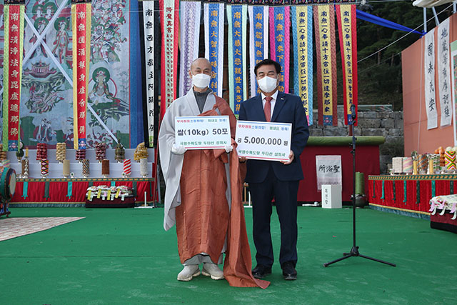 또, 이와 별도로 양미혜(수륙재추진위원장/신도회 부회장)위원장도 성금 100만 원을 동해시에 기증했다.