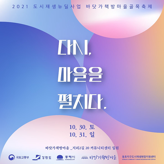 유현우 동호지구 현장지원센터장은 “이번 마을 축제를 통해 주민이 직접 공동체를 활성화하고 향후, 바닷가 책방마을이 유지되는 기동력이 될 것”이라고 전했다.