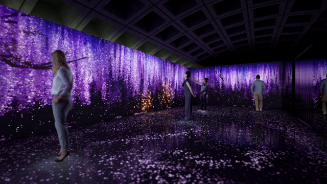 ‘광화원’은 도심 속 휴식과 회복의 정원이다. ‘생명의 빛’, ‘소통의 빛’, ‘영원의 빛’이라는 3가지 주제로 실감형 미디어아트 총 8종을 전시해 관람객들에게 치유와 명상의 시간을 제공한다.