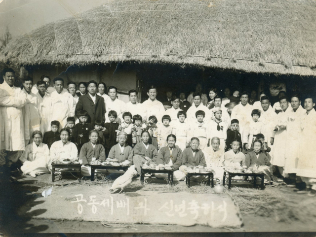 70년대 모를 심고 새참 먹는 장면, 60년대 설맞이 공동 세배, 전통 장례를 치르는 사진 등이다. 택지개발로 아파트 옆 공원으로 옮겨지기 전 취병 조형 유허비의 모습을 담은 사진도 공개됐다.
