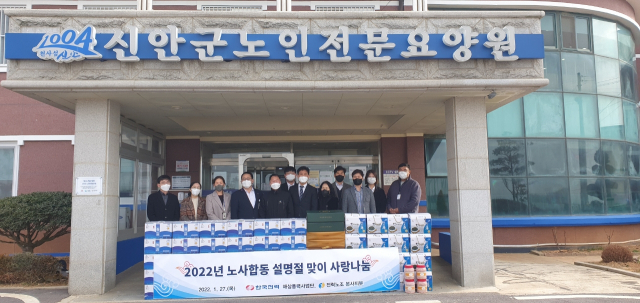 신안군은 지난 27일, 한국전력공사 해상풍력사업단(단장 김종화) 및 본사지부(위원장 김강정, 김성록)에서 설을 앞두고 신안지역 사회 취약계층에 대한 사랑나눔을 위해 노인요양시설, 장애인거주시설 및 아동양육시설을 대상으로 5백만원 상당의 신안군수협 특산품을 구매하여 전달하였다고 밝혔다.