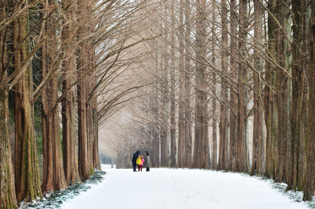 겨울이 수줍은 선물처럼 떨구고 간 담양 메타세쿼이아 ‘설경’