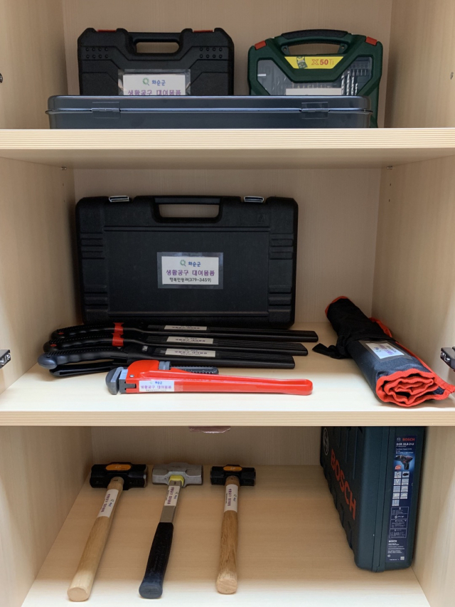 대여 품목은 ▲전동드릴 ▲드릴비트 세트 ▲충전식 전지가위 ▲파이프렌치 ▲수공구 세트 ▲돌망치 세트 ▲스패너 세트 ▲톱 세트 ▲소켓렌치 세트 9개다.