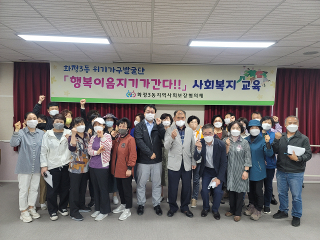 광주시 서구 화정3동 지역사회보장협의체(위원장 김승익)가 지난 25일 소외계층 및 위기가구 통합돌봄을 보다 효율적으로 실시하고 주민들의 복지의식에 변화를 기하고자 『행복e음지기가 간다』 복지교육을 개최했다고 밝혔다.