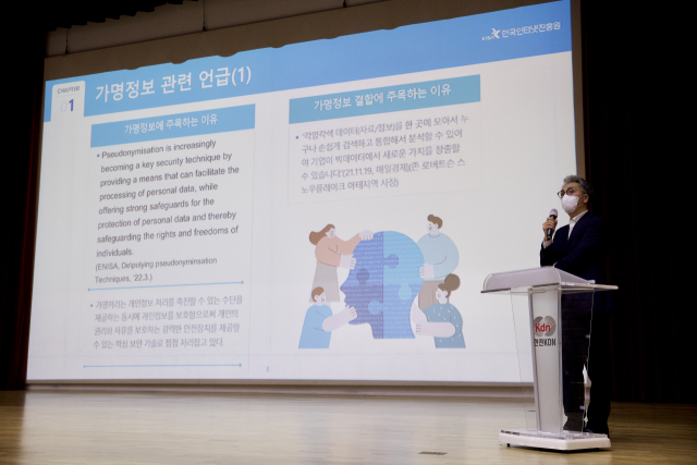 27일 진행된 집합 교육은 심동욱 한국인터넷진흥원 데이터안전활용단 단장의 “가명처리 절차 및 기술”과 김병수 한전KDN 에너지데이터추진부 차장의 “결합전문기관 및 우수사례 소개”를 주제로 진행이 되었다.
